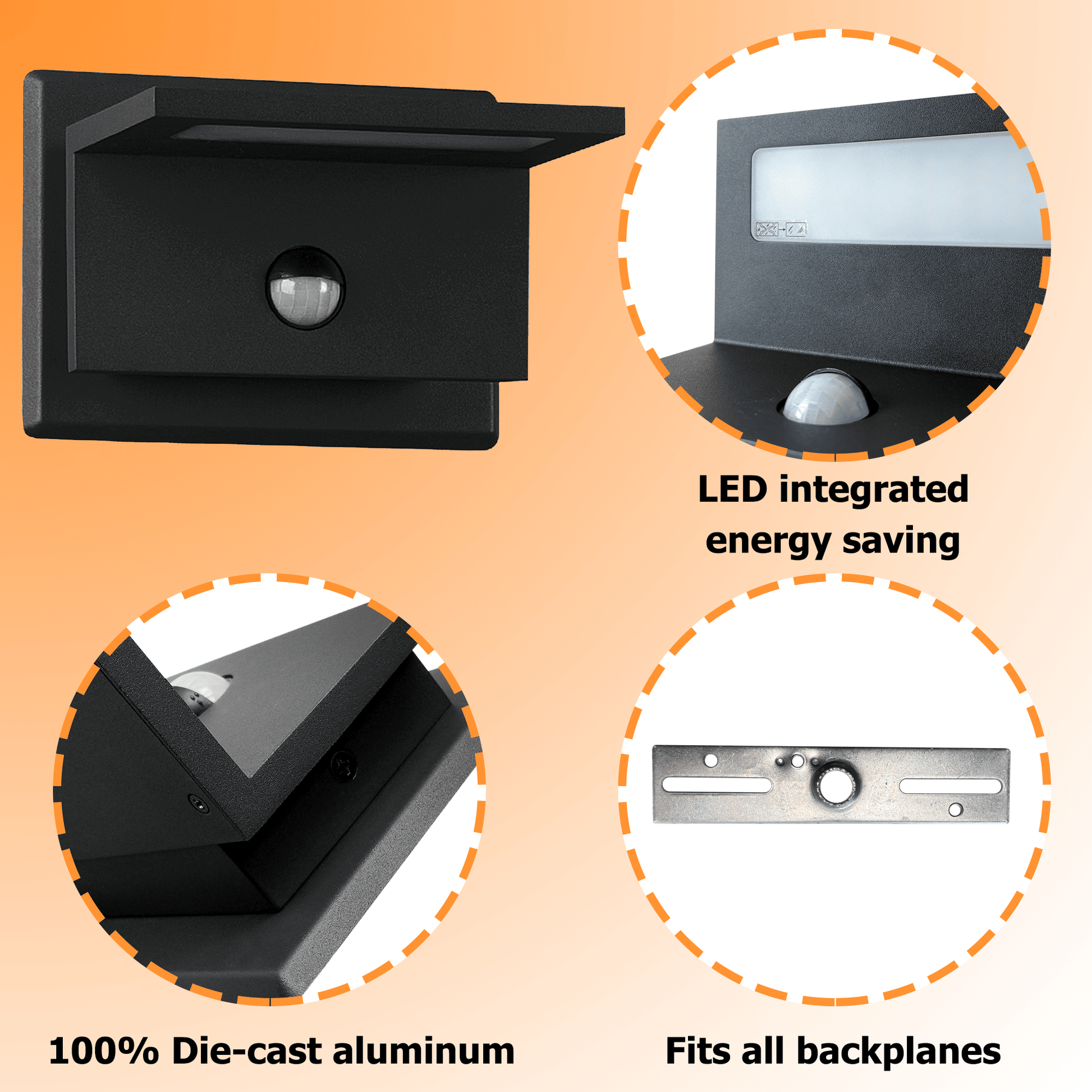 Our Motion Sensor Outdoor Wall Light merges cutting-edge technology with robust construction. Engineered for demanding climates, its die-cast aluminum body and IP65 rating defy rust and heavy rain, while the ETL certification guarantees electrical safety.