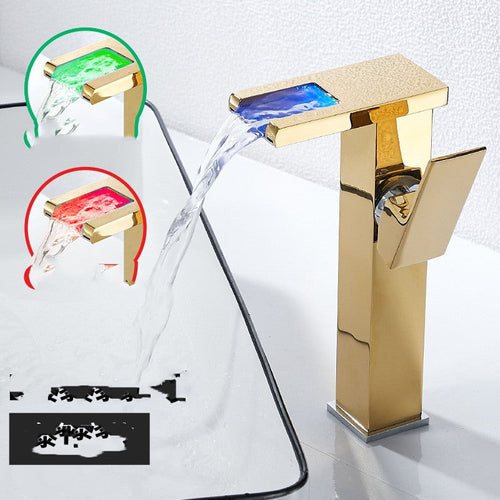 Modern Vanity Sink Faucet with LED Temperature Display for Hot and